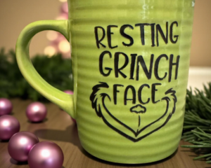 Resting Grinch Face Christmas Mug; Engraved Mug