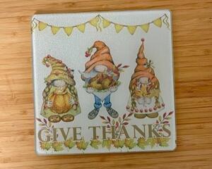 Thanksgiving Gnomes Glass Trivet Chopping Board